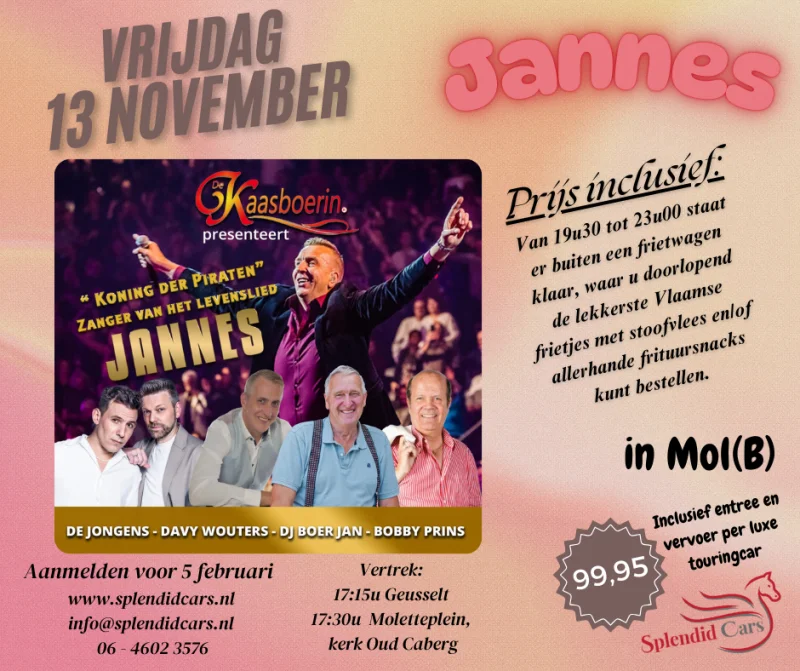 Ga mee met onze gezellige busreis naar een onvergetelijke feestavond met niemand minder dan Jannes bij de Kaasboerin!